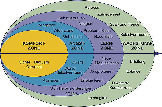 Hier wird Lernen zu einem tief erfüllenden Prozess. Es fühlt sich sinnvoll an, kraftvoll, weit. Vertrauen in uns selbst wächst – und mit ihm die Zuversicht, dass Neues nicht Bedrohung, sondern Entwicklung bedeutet. Von hier aus sehen Komfort- und Angstzone anders aus: verständlicher, kleiner, und vor allem – überwindbar.